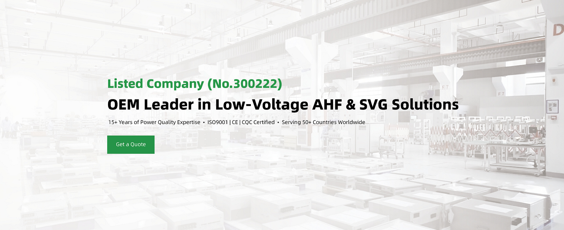 Power Quality Control Treating the power quality problems such as harmonic, reactive power and three-phase imbalance on the load side of the power grid. We have been promoting the intelligent, convenient, efficient and clean use of power energy. Reduce Economic Losses Europe loses 150 billion euros a year because of power quality problems (Voltage Sag, Short Outage, Harmonic Interference, Long Outage, The Transient Impact).To avoid these losses, only 5% investment is required. Customized Products & Better Service Provide best solutions based on site conditions. Professional engineers will provide technical guidance throughout the process. You will have professional power quality experts. New Energy Active Voltage Conditioner and Energy Storage System are also our our Products. CORPORATE SOCIAL RESPONSIBILITY What We Value Smart Energy Convenient Energy Efficient Energy Clean Energy What We Produce Active Power(Harmonic) Filter and Static Var Generator AHF and SVG Modules production have reached more than 10,000 units in 2021. HEADQUARTER SHANGHAI, CHINA